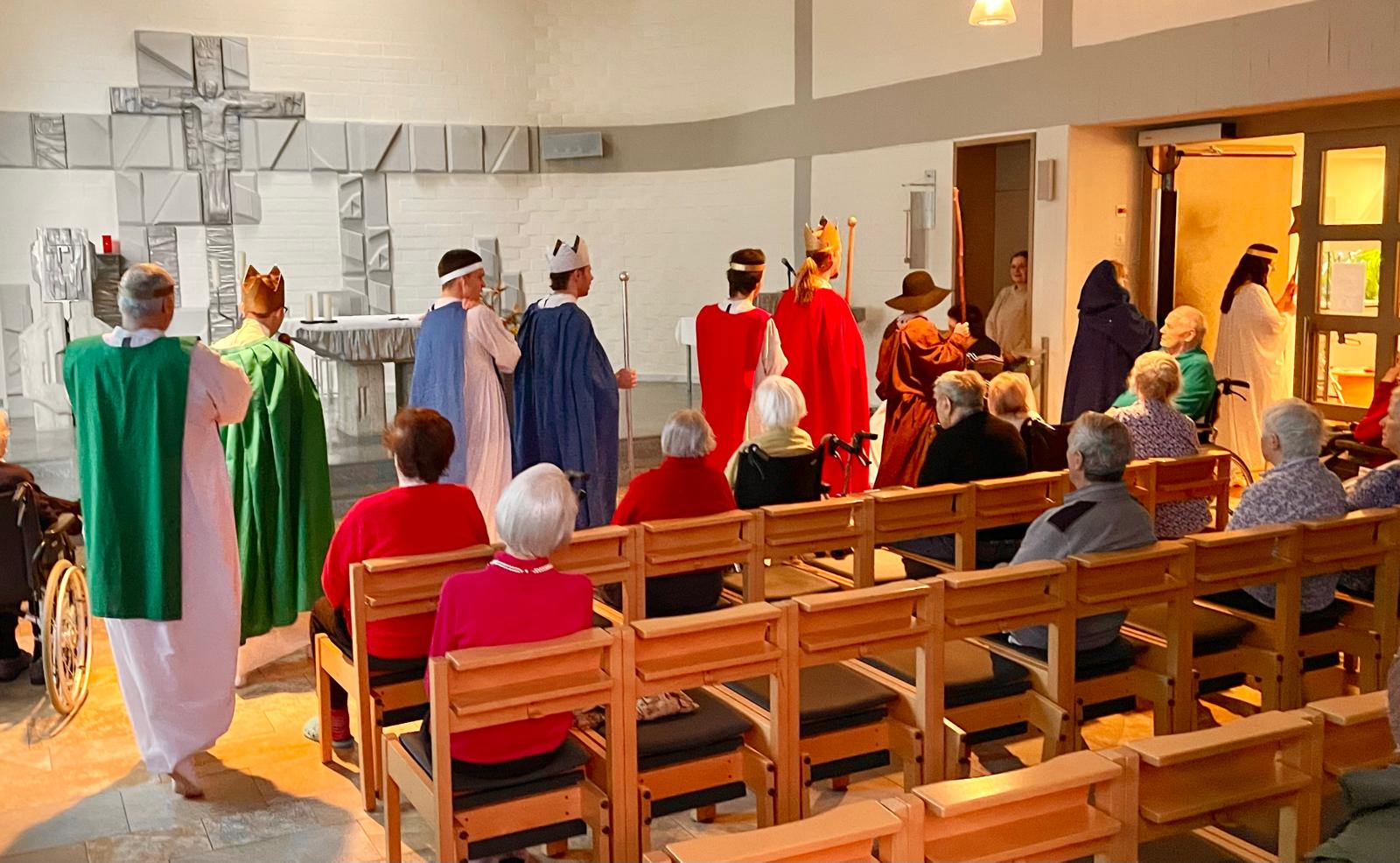 Wir durften mit unserem Spiel das Altenheim St. Martin in der Nürnberger Nordstadt besuchen und es dort in der Kapelle den Bewohnerinnen und Bewohnern zeigen.